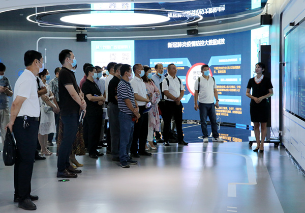 圖為(wèi)中小(xiǎo)微企業代表參觀廣投數(shù)字經濟示範基地展示中心